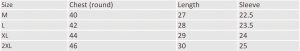 Size chart – In inches (Expected Deviation < 3%)